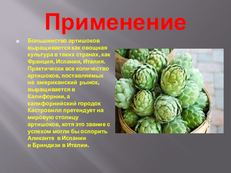 Большинство артишоков выращивается как овощная культура в таких странах, как