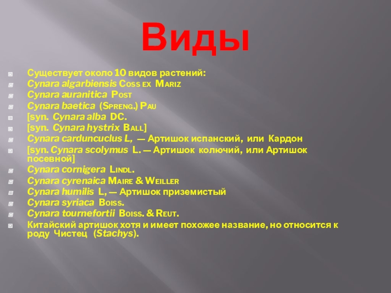 [syn. Cynara scolymus L. — Артишок колючий, или Артишок посевной]