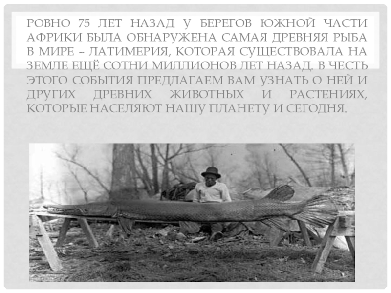 Слайд 2Ровно 75 лет назад у берегов южной части Африки была обнаружена