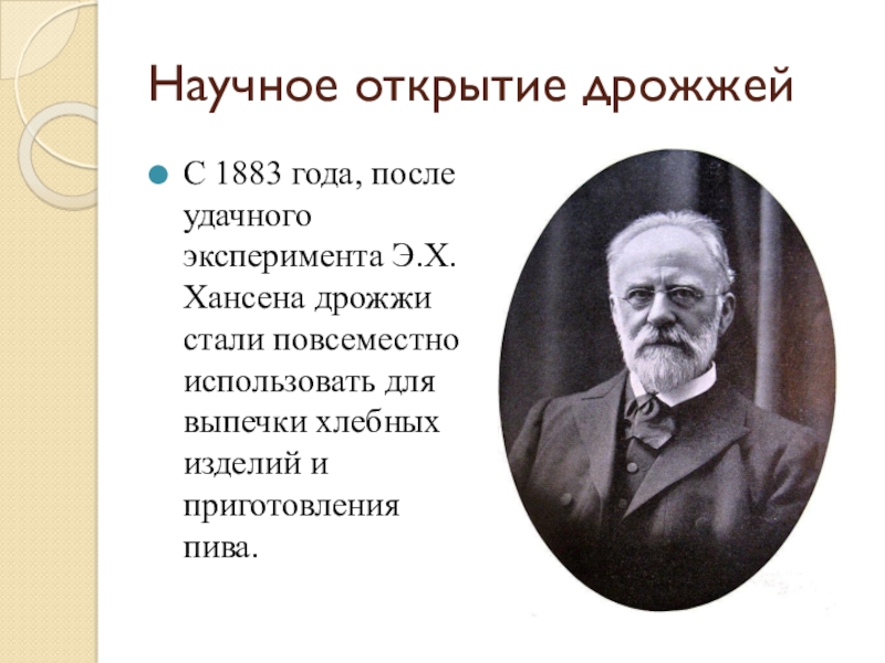 С 1883 года, после удачного эксперимента Э.Х. Хансена дрожжи