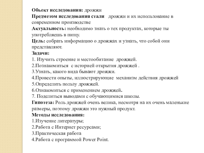 Предметом исследования стали дрожжи и их использование