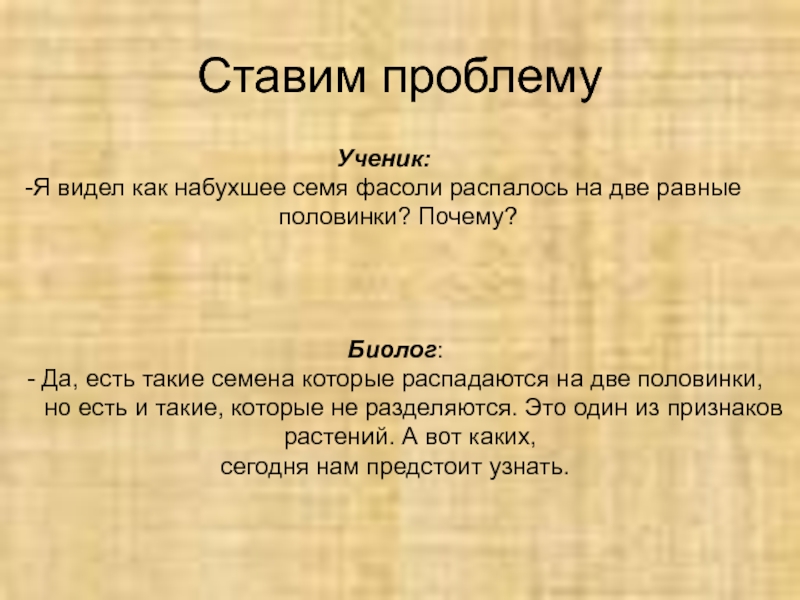 - Да, есть такие семена которые распадаются на две половинки, но есть и такие, которые не разделяются. Это один из признаков растений. А вот каких,