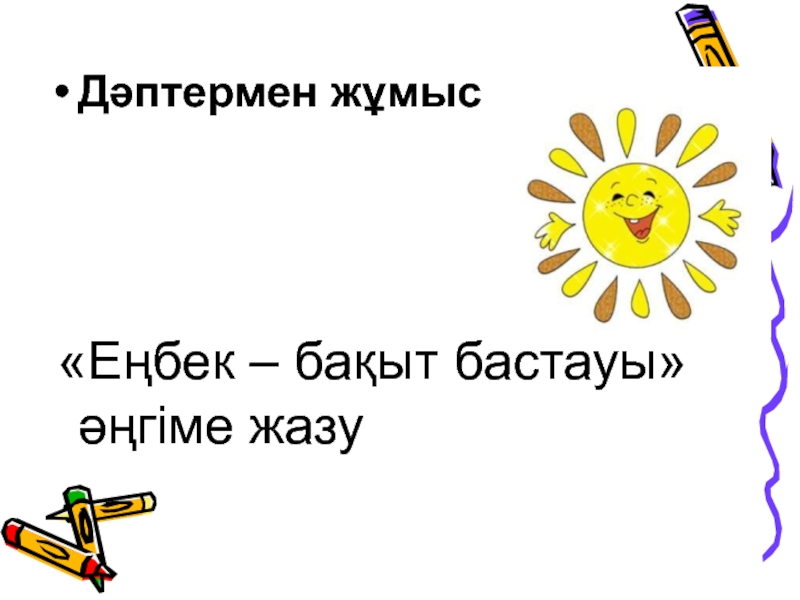 Дәптермен жұмыс «Еңбек – бақыт бастауы» әңгіме жазу
