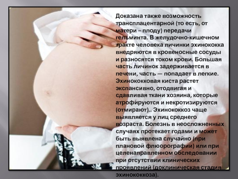 Слайд 12Доказана также возможность трансплацентарной (то есть, от матери – плоду) передачи