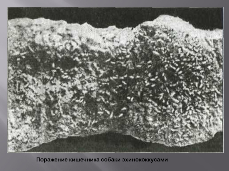 Слайд 24Поражение кишечника собаки эхинококкусами
