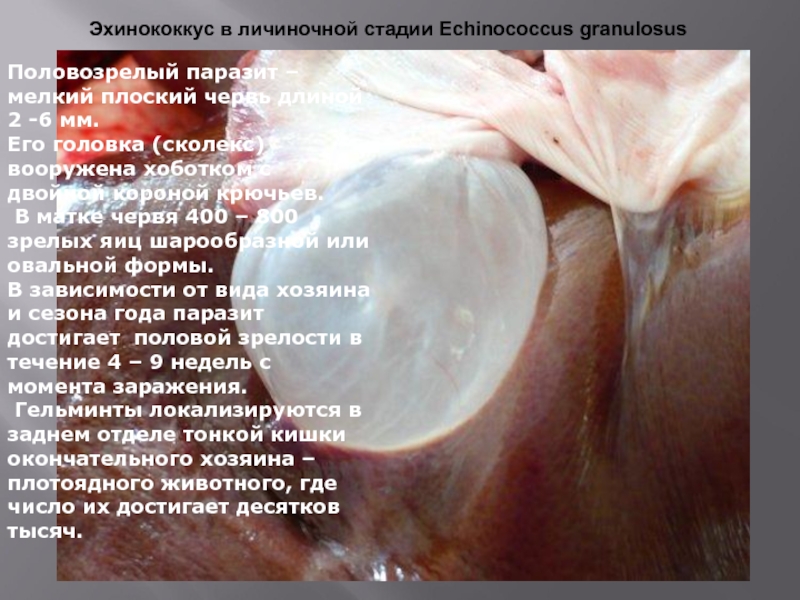 Слайд 6Эхинококкус в личиночной стадии Echinococcus granulosus