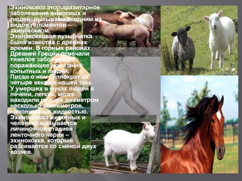 Слайд 2Эхинококоз это паразитарное заболевание животных и людей, вызываемое одним из видов