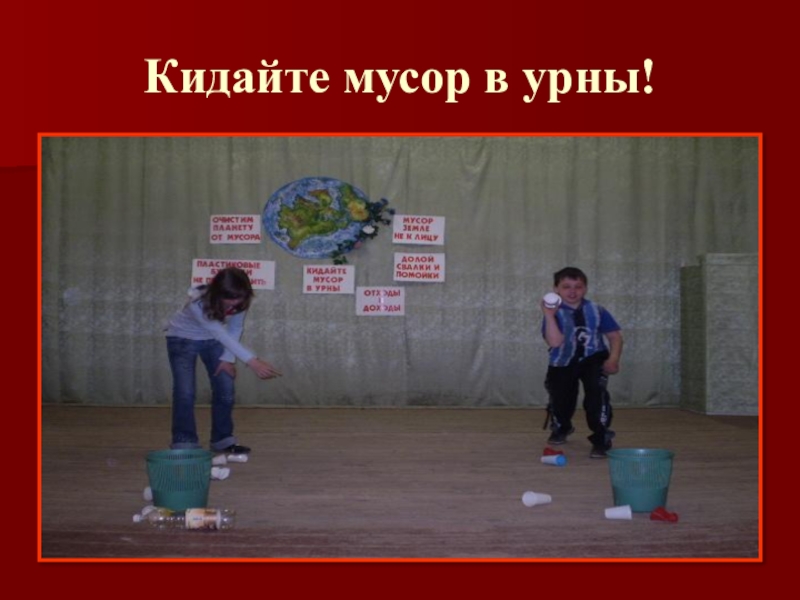 Слайд 8Кидайте мусор в урны!
