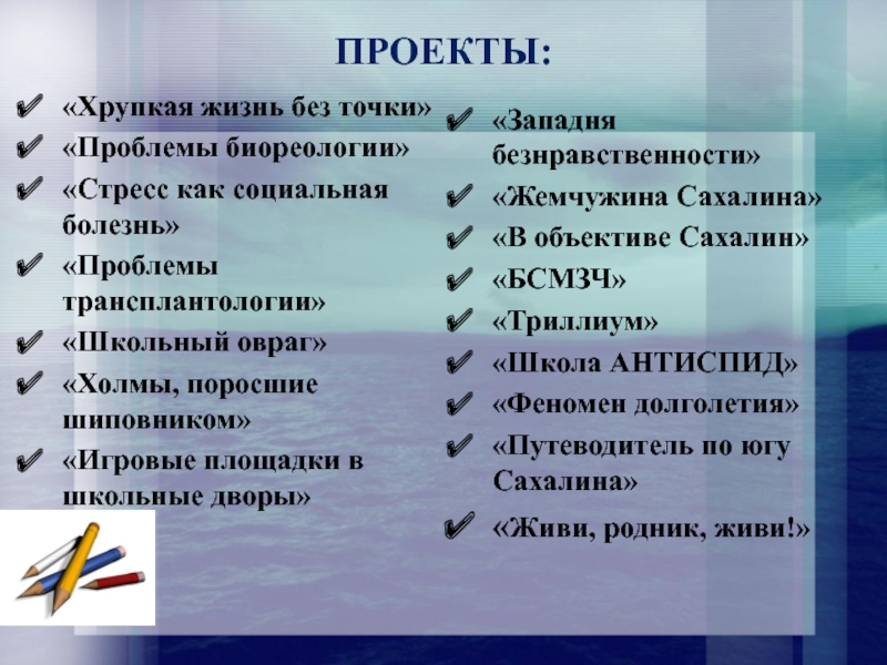 Это сайт презентаций, где можно хранить и обмениваться своими презентациями, докладами, проектами, шаблонами в формате PowerPoint с другими пользователями. Мы помогаем школьникам, студентам, учителям, преподавателям хранить и обмениваться учебными материалами.