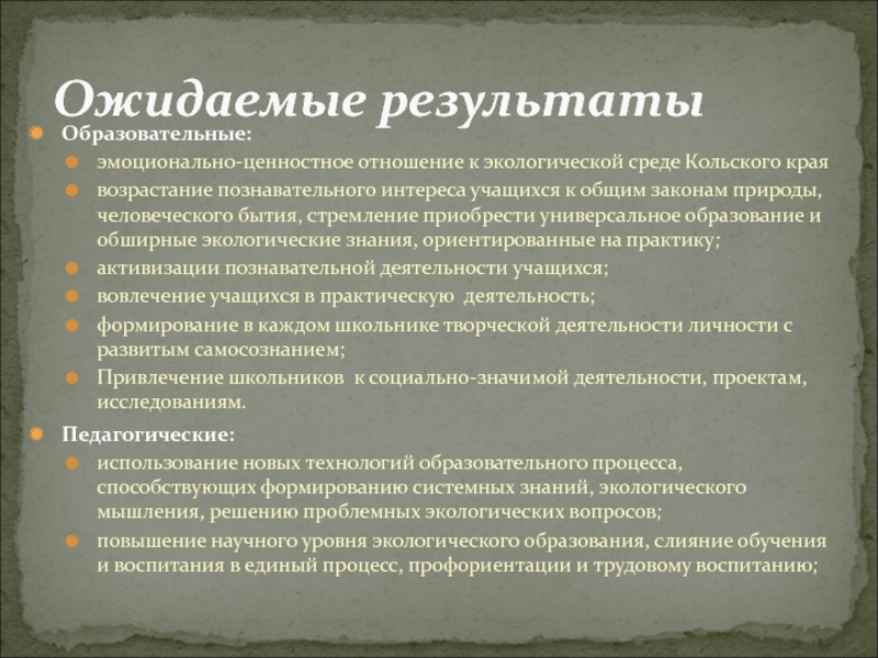 Ожидаемые результаты
