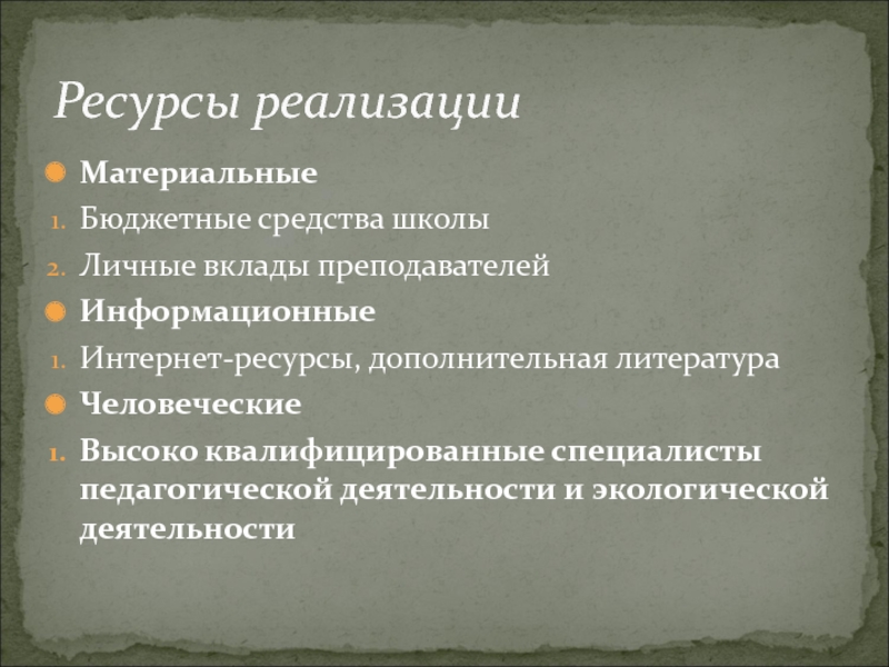 Ресурсы реализации