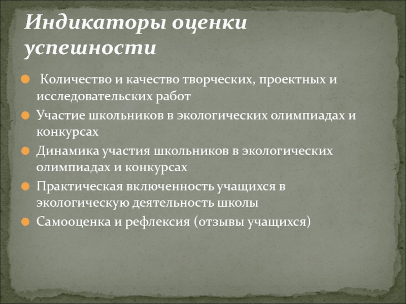 Индикаторы оценки успешности