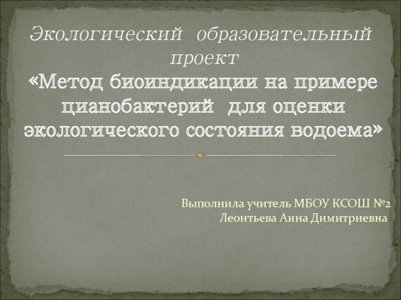 биоиндикации на примере цианобактерий для оценки экологического состояния водоема»