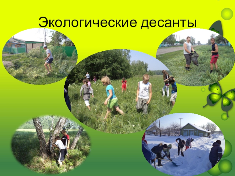 Проведение и участие в экологических десантах по уборке леса, территории школы и села.