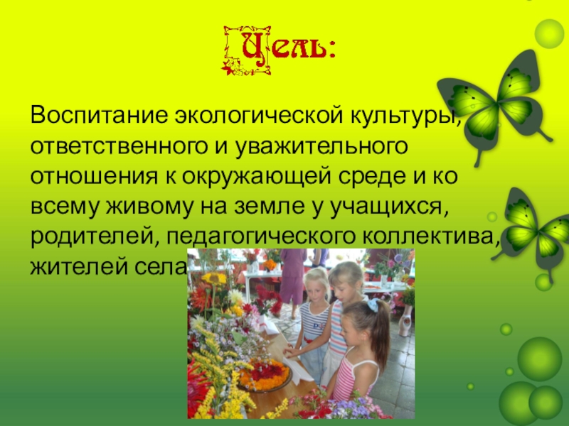 Слайд 3Воспитание экологической культуры, ответственного и уважительного отношения к окружающей среде и