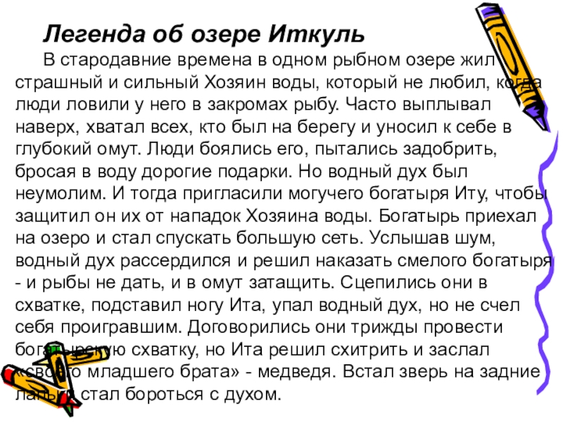 Слайд 2 Легенда об озере Иткуль