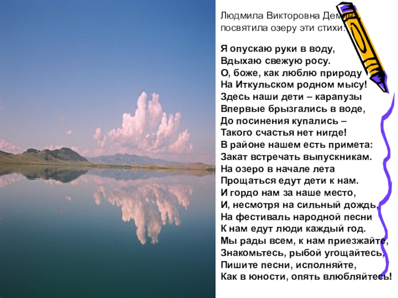 посвятила озеру эти стихи: