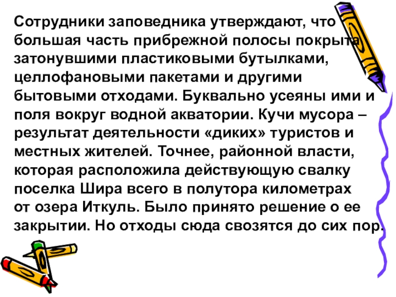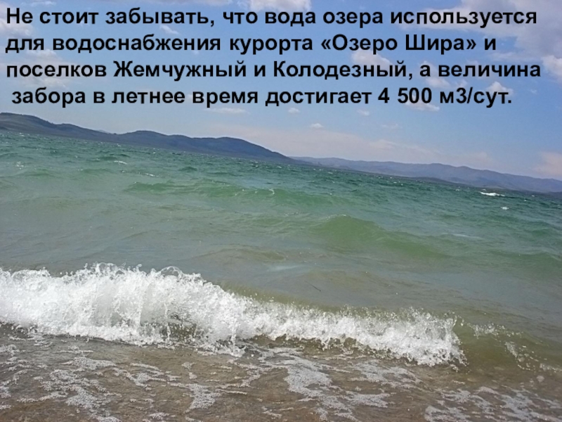 Слайд 14Не стоит забывать, что вода озера используется