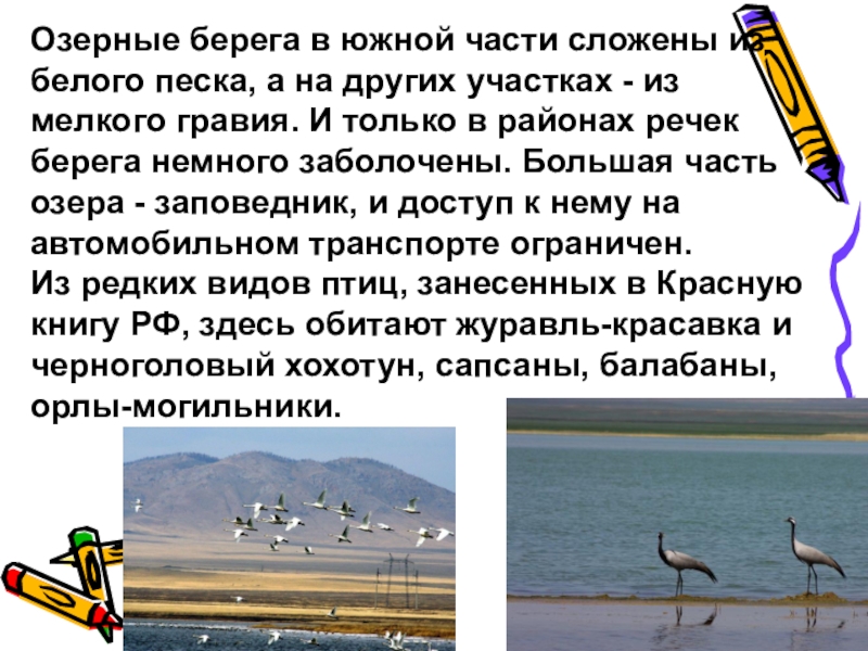 Слайд 9Озерные берега в южной части сложены из