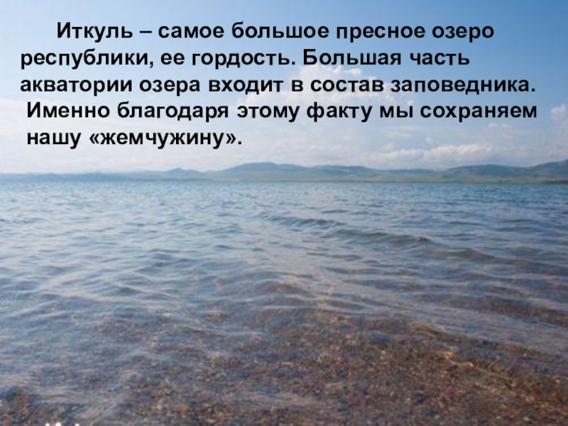 Слайд 5 Иткуль – самое большое пресное озеро