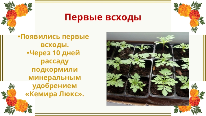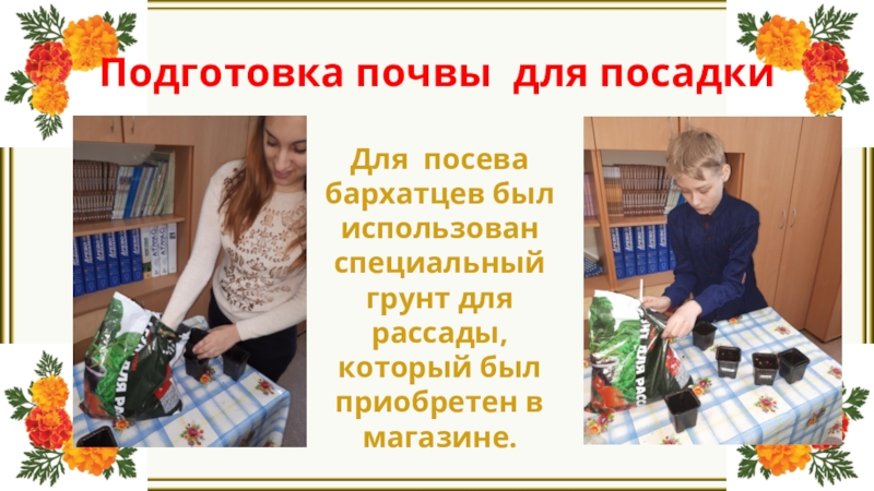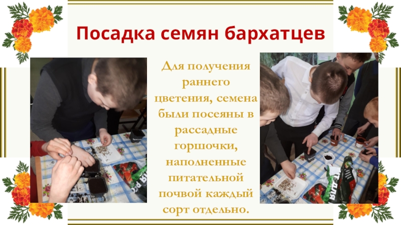 Слайд 13Посадка семян бархатцев
