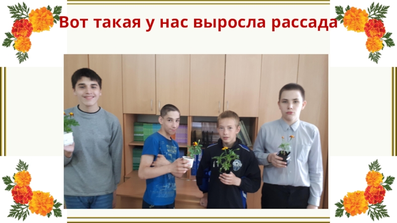 Бархатцы, которые были выращены учащимися заняли достойное место