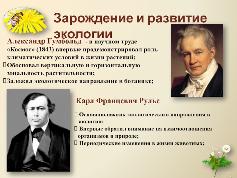 Впервые обратил внимание на взаимоотношения организмов в природе;