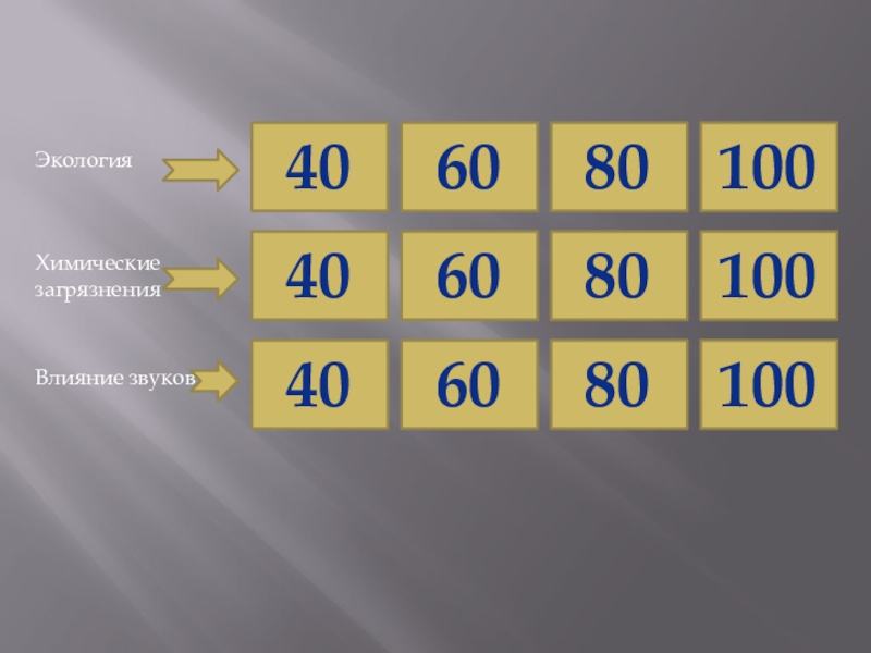 Химические загрязненияЭкология Влияние звуков100100808080606060404040100