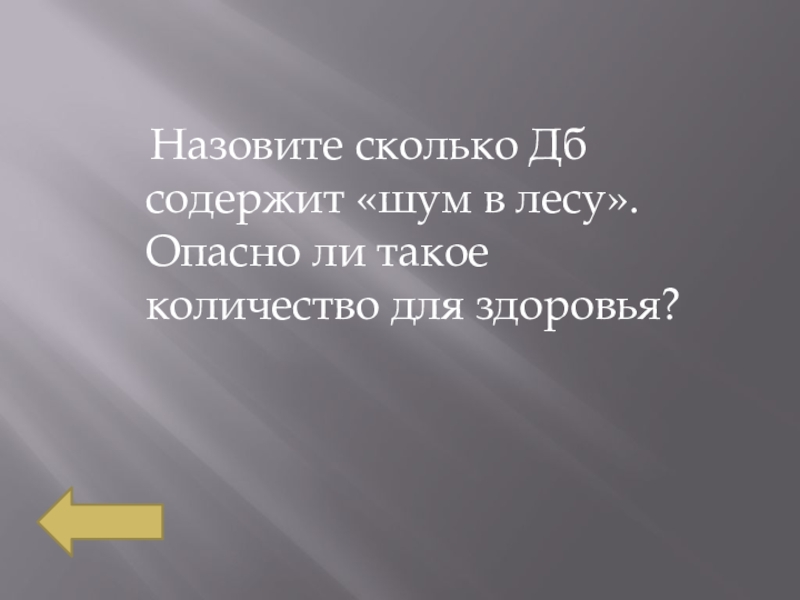 Слайд 5 Назовите сколько Дб содержит «шум в лесу». Опасно ли такое
