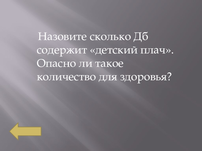 Слайд 8 Назовите сколько Дб содержит «детский плач». Опасно ли такое количество