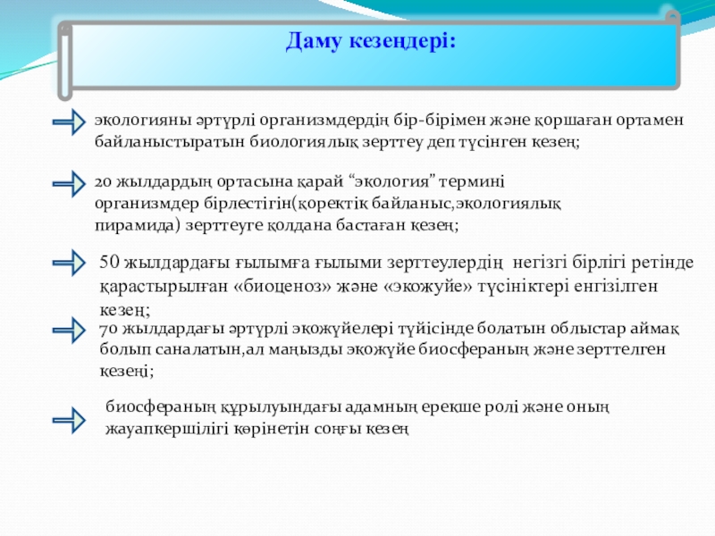 70 жылдардағы әртүрлі экожүйелері түйісінде болатын облыстар аймақ болып саналатын,ал маңызды экожүйе биосфераның және зерттелген кезеңі;