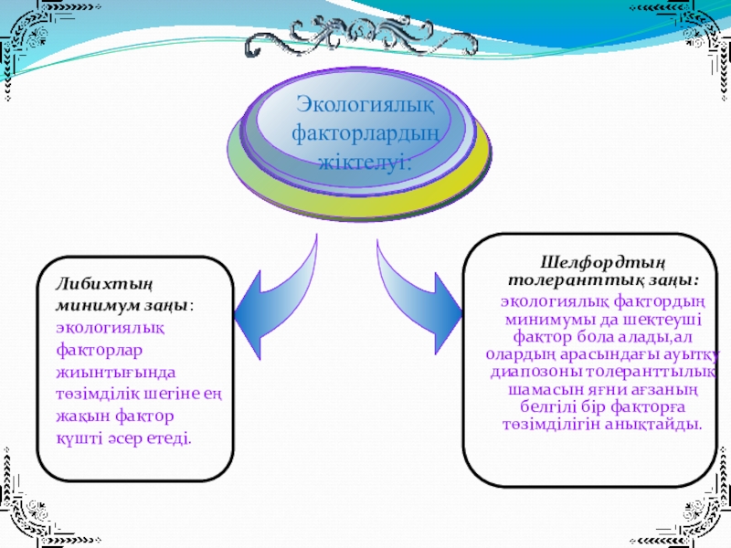 экологиялық фактордың минимумы да шектеуші фактор бола алады,ал олардың арасындағы ауытқу диапозоны толеранттылық шамасын яғни ағзаның белгілі бір факторға төзімділігін анықтайды.