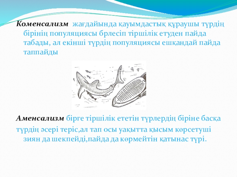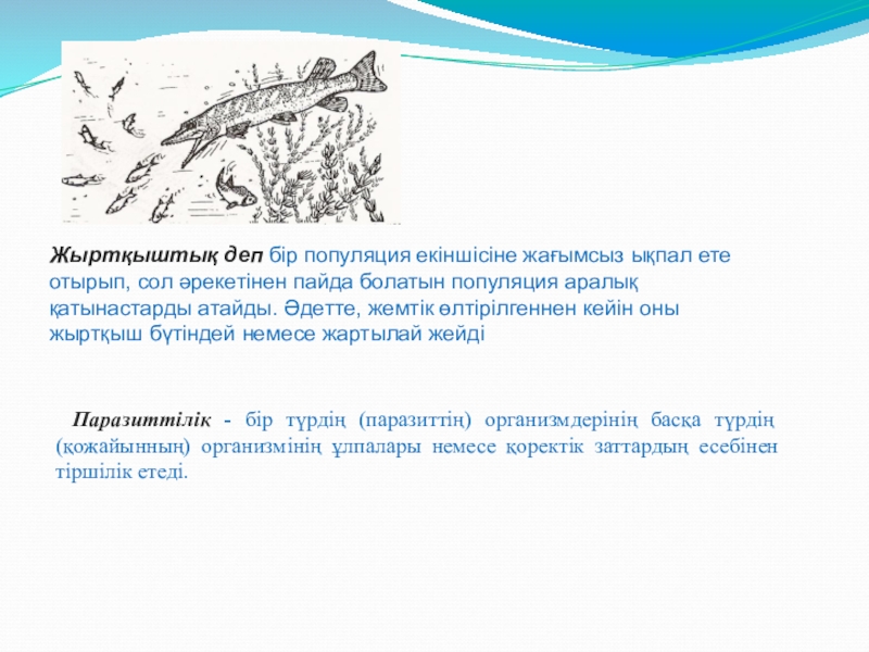 Паразиттілік - бір түрдің (паразиттің) организмдерінің басқа түрдің (қожайынның) организмінің ұлпалары немесе қоректік заттардың есебінен тіршілік етеді.