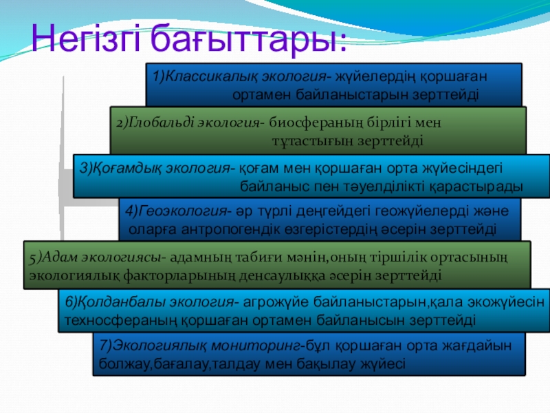 4)Геоэкология- әр түрлі деңгейдегі геожүйелерді және