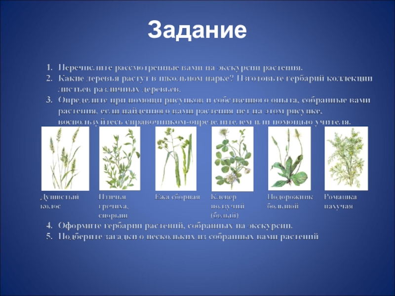 Познакомить с многообразием дикорастущих растений, их приспособленностью к обитанию в сообществе;