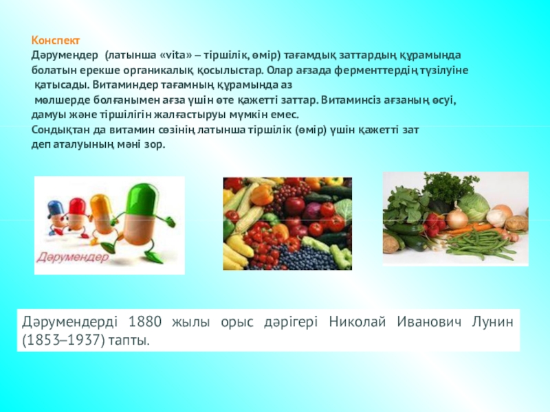 Дәрумендер (латынша «vіta» – тіршілік, өмір) тағамдық заттардың құрамында