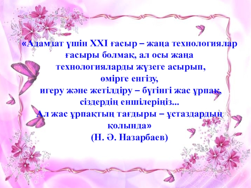 Слайд 5«Адамзат үшін ХХІ ғасыр – жаңа технологиялар ғасыры болмақ, ал осы
