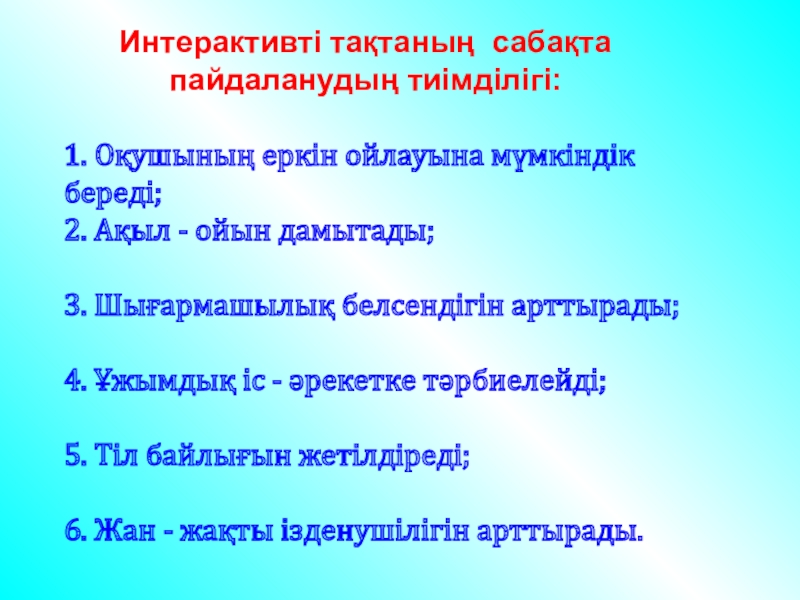 Интерактивті тақтаның сабақта пайдаланудың тиімділігі: