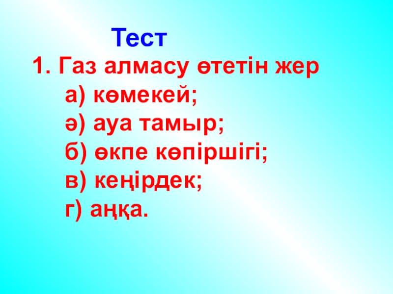 Слайд 121. Тыныс алу қозғалысына қатысатын мүше