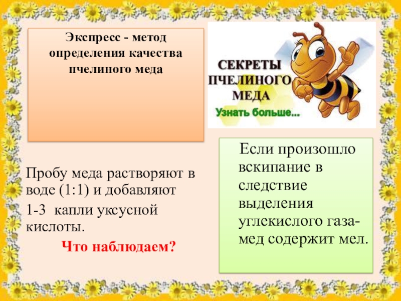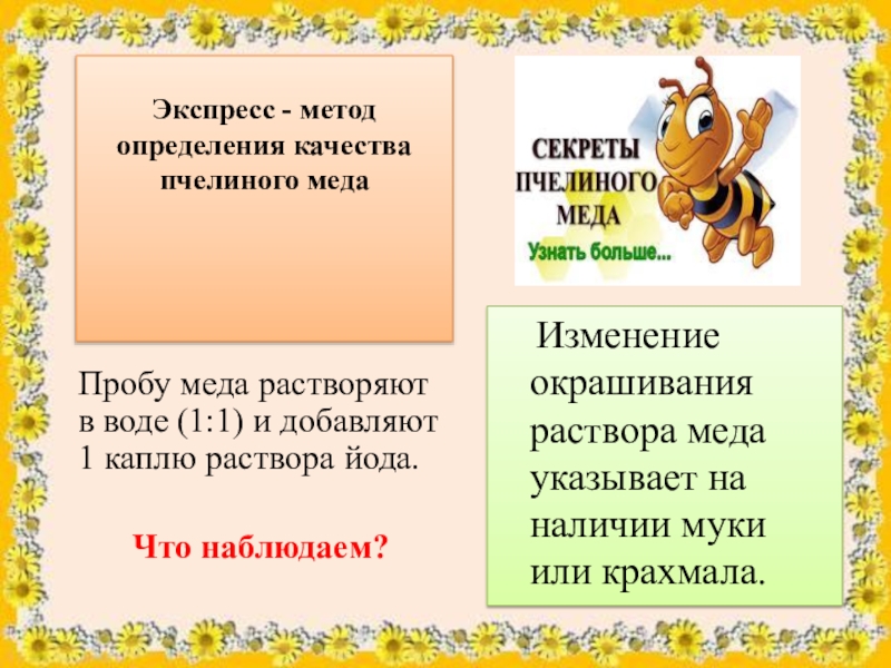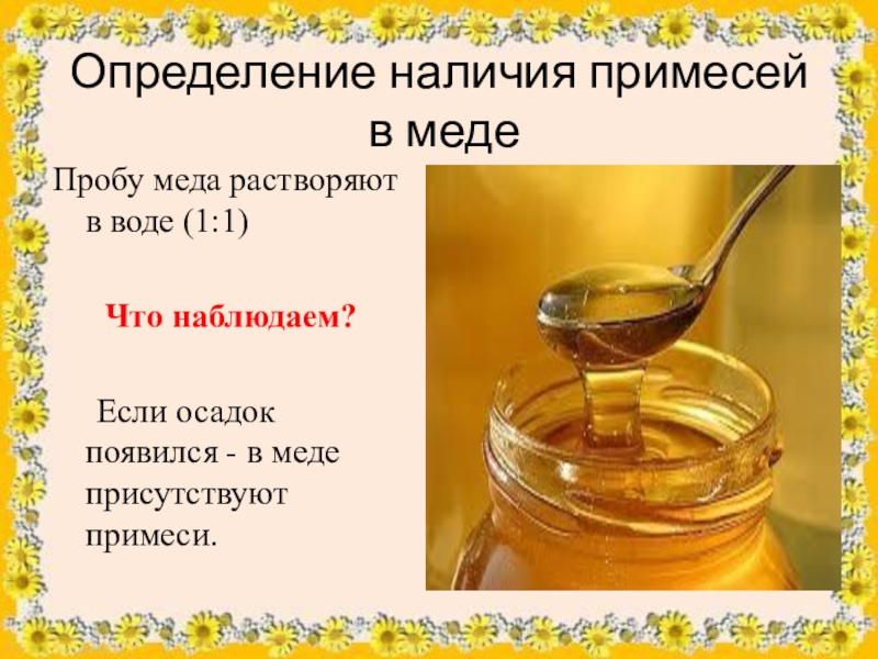 Пробу меда растворяют в воде (1:1) и добавляют