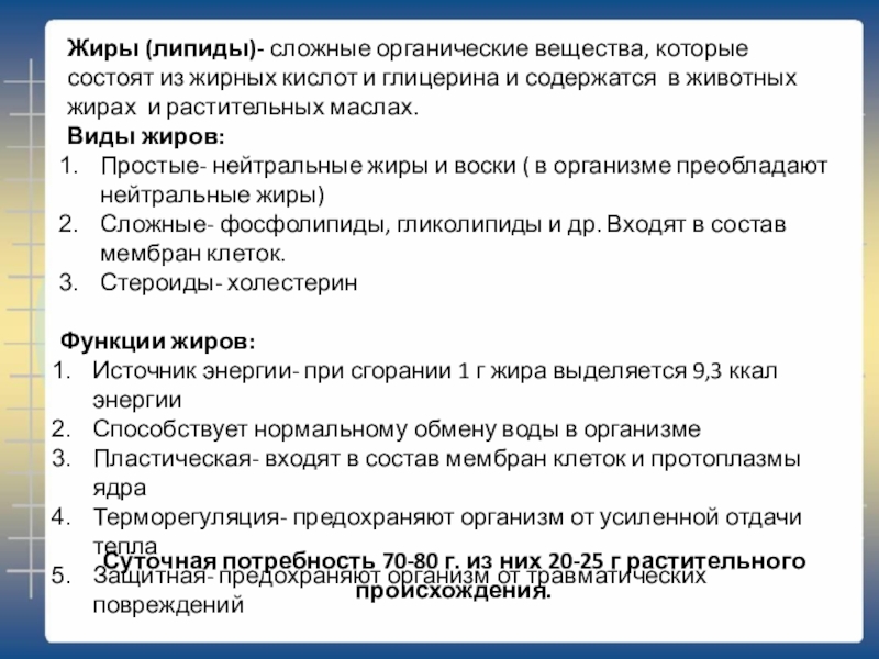 Тема: «Обмен веществ и энергии. Терморегуляция»
