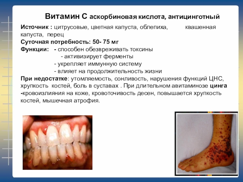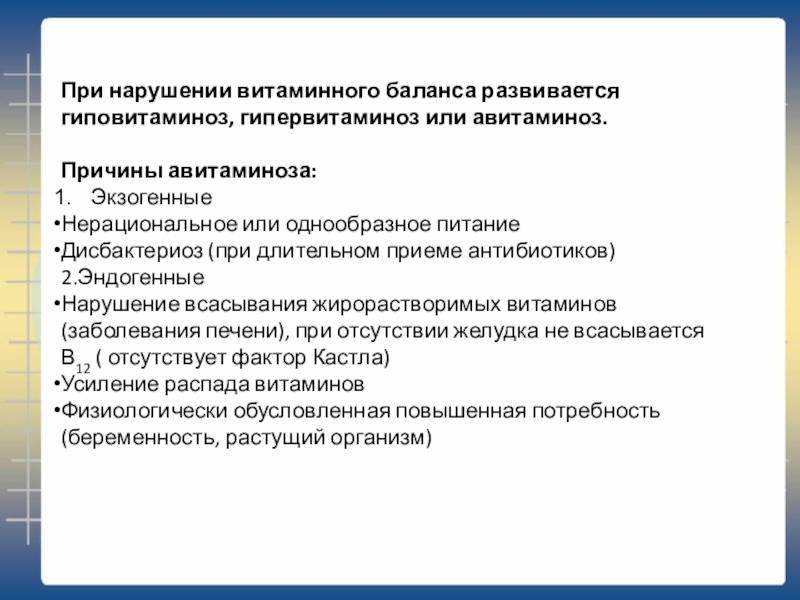 а) недостаток витамина б) отсутствие витамина в) избыток витамина