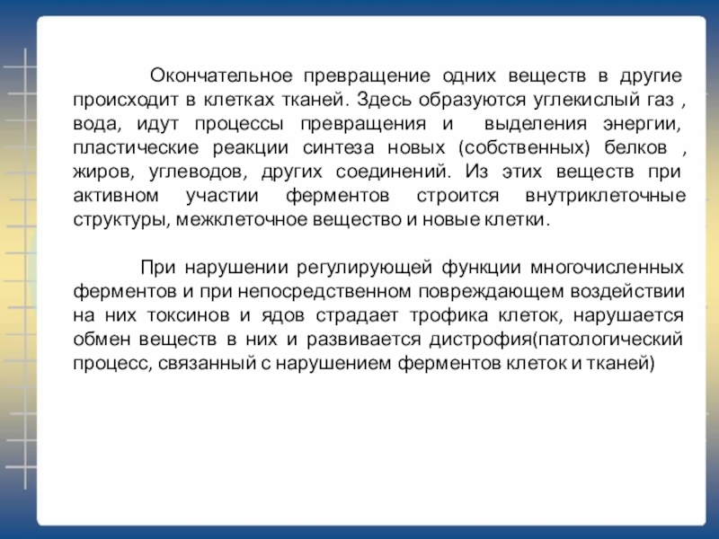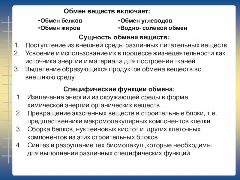 Слайд 10 Обмен веществ является характерным свойством живого организма. Его сущность заключается