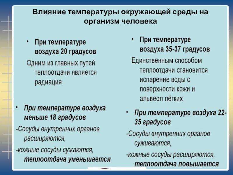 Слайд 66Влияние температуры окружающей среды на организм человека