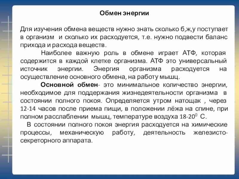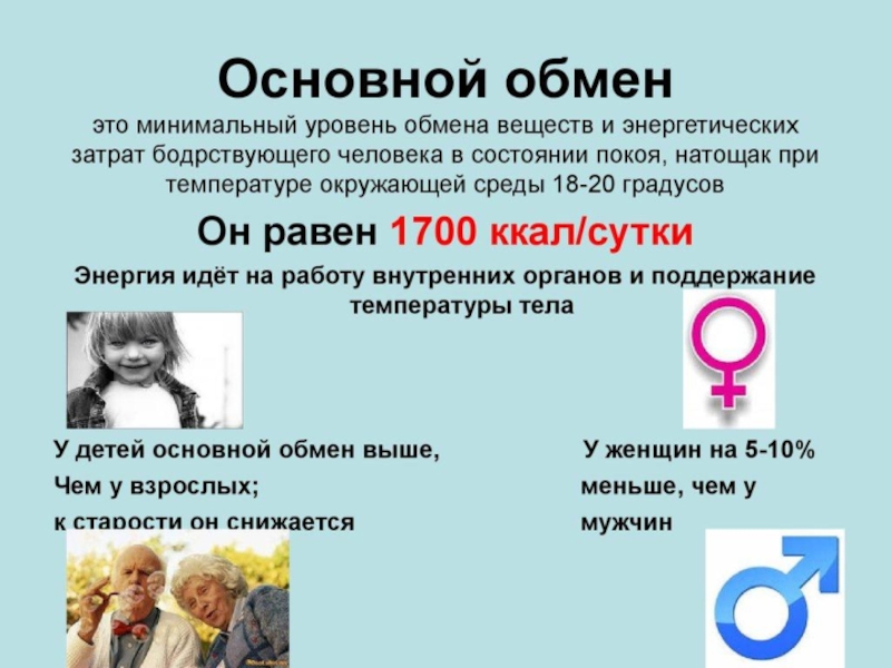 Основной обмен- количество энергии, необходимое организму для его жизнедеятельности в течении суток