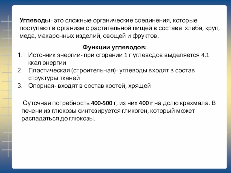 Обмен веществ и энергии является основным свойством живой материи. Жизнедеятельность возможна лишь при постоянном поступлении энергии в организм и использование им этой энергии. Энергия необходима для деятельности всех систем и органов, даже если человек находится в полном покое. Организм получает и использует энергию за счет поступления с пищей органических веществ, богатых энергией, в процессе расщепления их до конечных продуктов.