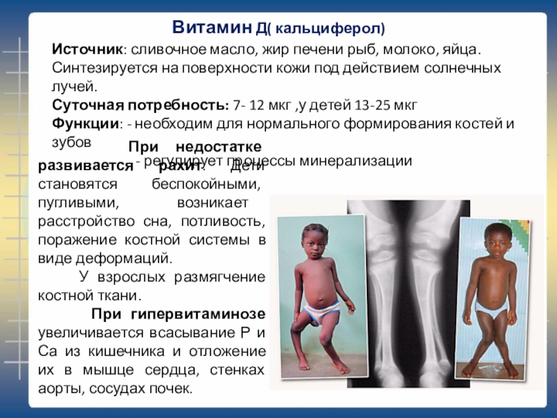 5. Развитие рахита у детей происходит от недостатка в пище витамина:
