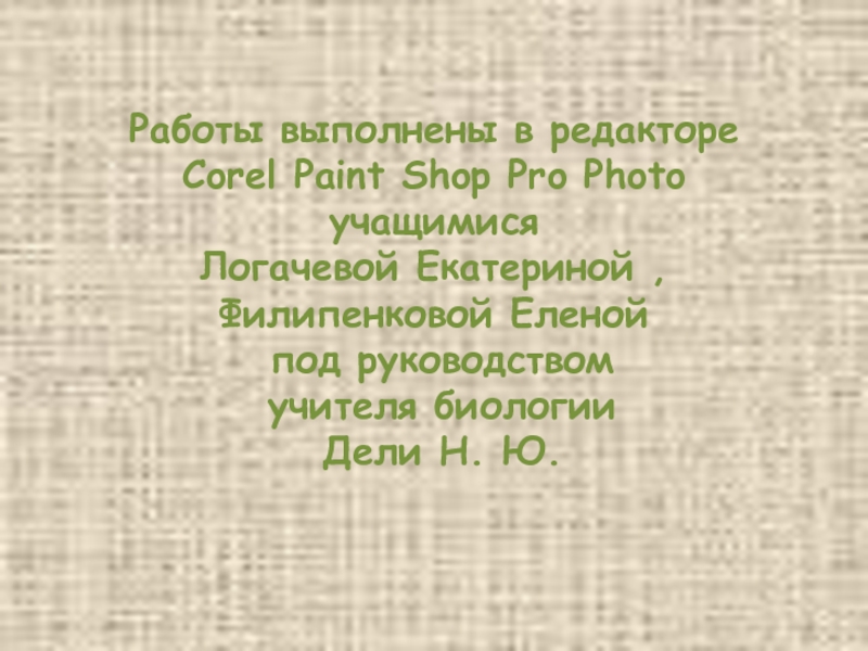 Работы выполнены в редакторе Corel Paint Shop Pro Photo учащимися Логачевой Екатериной ,Филипенковой Еленой под руководством учителя