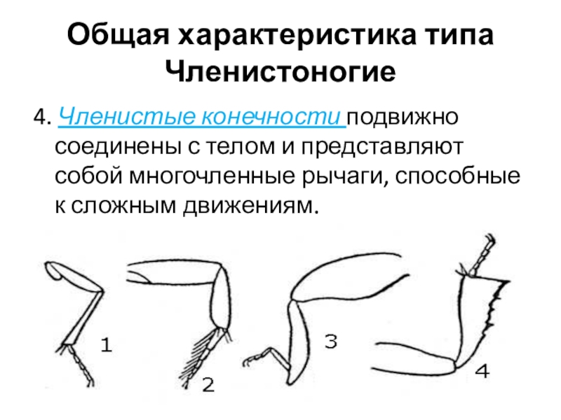 4. Членистые конечности подвижно соединены с телом и представляют собой многочленные рычаги, способные к сложным движениям.Общая характеристика