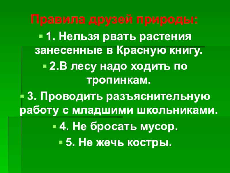 1. Нельзя рвать растения занесенные в Красную книгу.
